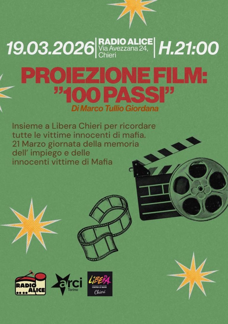 Proietteremo “100 passi”, un film che negli anni ha raccontato la Storia di Peppino Impastato di Marco Tullio Giordana.